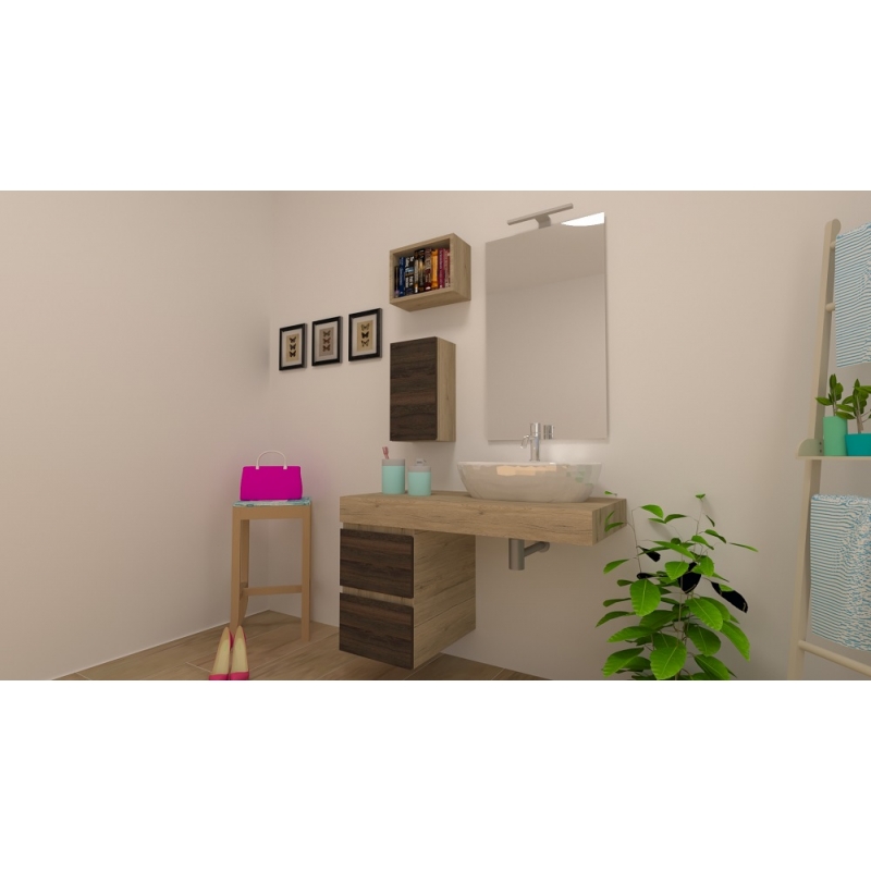 MOBILE BAGNO FREEDOM MONTI TOP VELETTA LAVABO CERAMICA BASE 2 CASSETTI SPECCHIO FILO LUCIDO LAMPADA LED PENSILE A GIORNO PENSILE