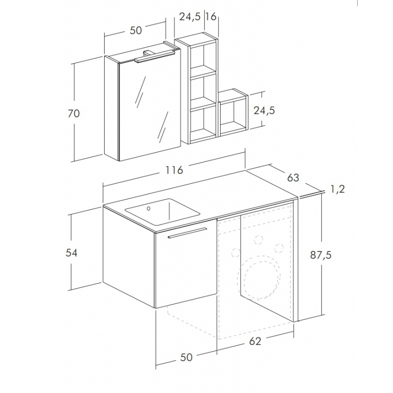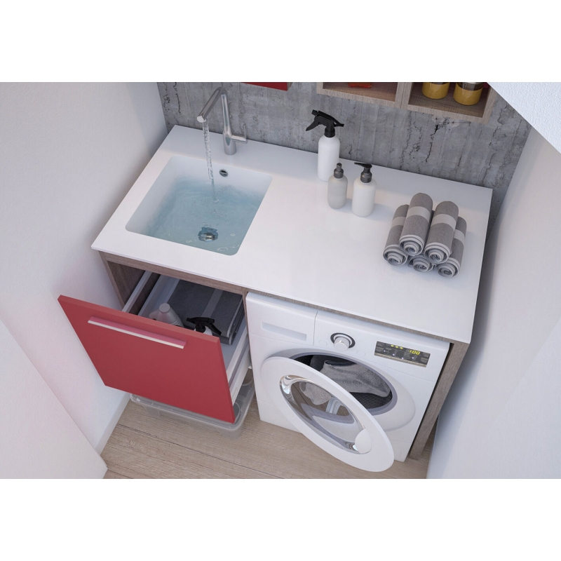 MOBILE LAVANDERIA L2 BASE TOP LAVABO OCRITECK BASE COPRI LAVATRICE SPECCHIO CONTENITORE LAMPADA LED PENSILE A GIORNO COLORAZION
