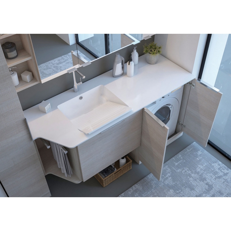 MOBILE LAVANDERIA L3 CM 200 BASE TOP LAVABO POLITEK BASE COPRI LAVATRICE SPECCHIO CONTENITORE PENSILE A GIORNO COLONNA 1 ANTA COLORAZIONE TRANCHE' ROVERE CHIARO