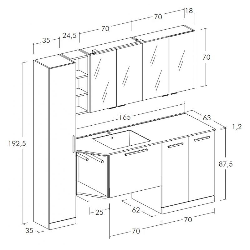 Nr. 1 Pensile a giorno cm 25x16x70 (L X P X H)