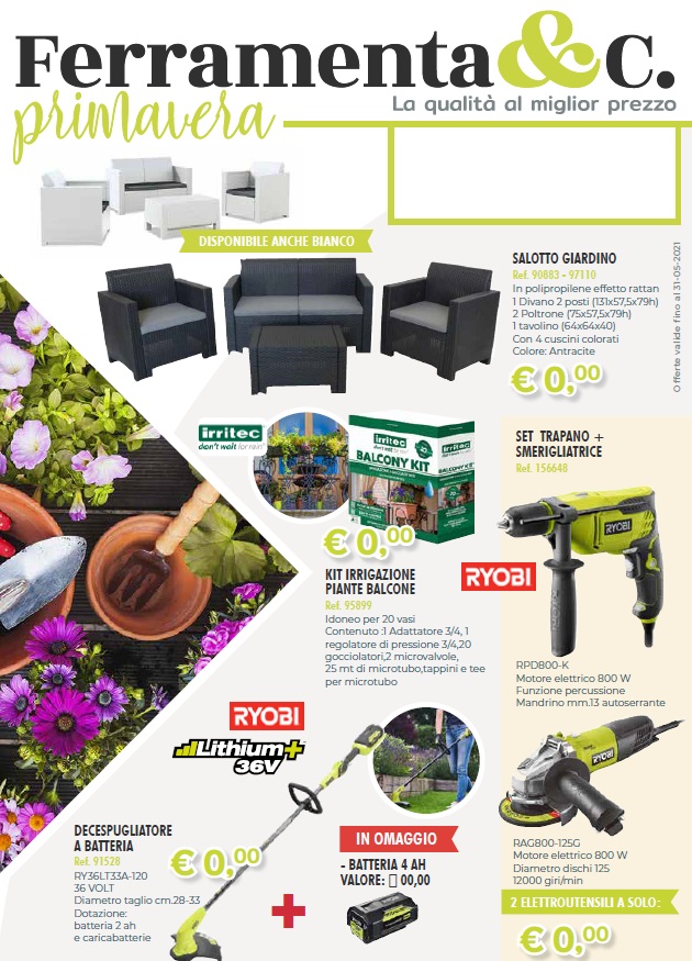 Pubblicato : 2021-04-26FERRAMENTA & C. PRIMAVERACategoria : Le Offerte Clicca sull'anteprima del volantino e scopri tutte le nuove offerte!FERRAMENTA & C. PRIMAVERA