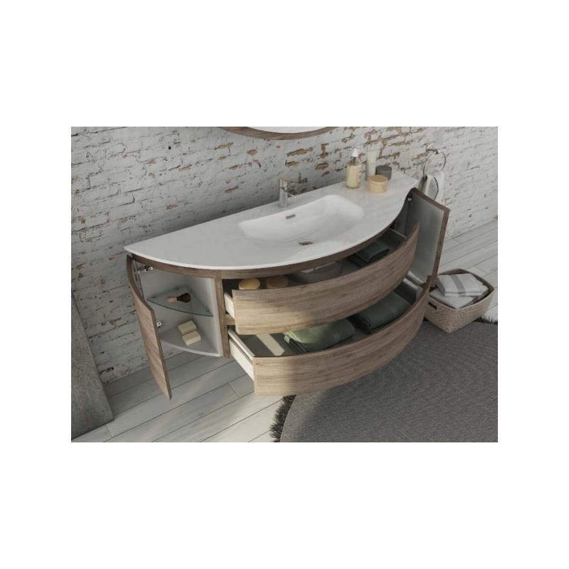 Le sale da bagno possono essere arredate in tanti modi diversi in base al proprio gusto. Spesso si opta per composizioni semplici che esaltino il senso di ordine e pulizia, cercando di sfruttare al meglio lo spazio disponibile. Che si tratti di un pensile o di un mobile a colonna, una composizione con lavabo o uno scaffale a giorno, il mobile da bagno curvo va scelto tenendo conto dello spazio a disposizione e del design del mobile stesso. Composizioni di varie forme, stile e materiali consentono, in base allo spazio disponibile e alle esigenze personali, di personalizzare al massimo il bagno e, volendo, di coordinarne lo stile con il resto dell’abitazione, richiamandone finiture e colori. I mobili con le loro linee e moduli rientranti permettono di ottimizzare al meglio lo spazio e di inserirsi anche in contesti meno ampi, laddove vi è necessità di variare e ridurre le profondità d’ingombro del mobile senza rinunciare mai alla capienza.